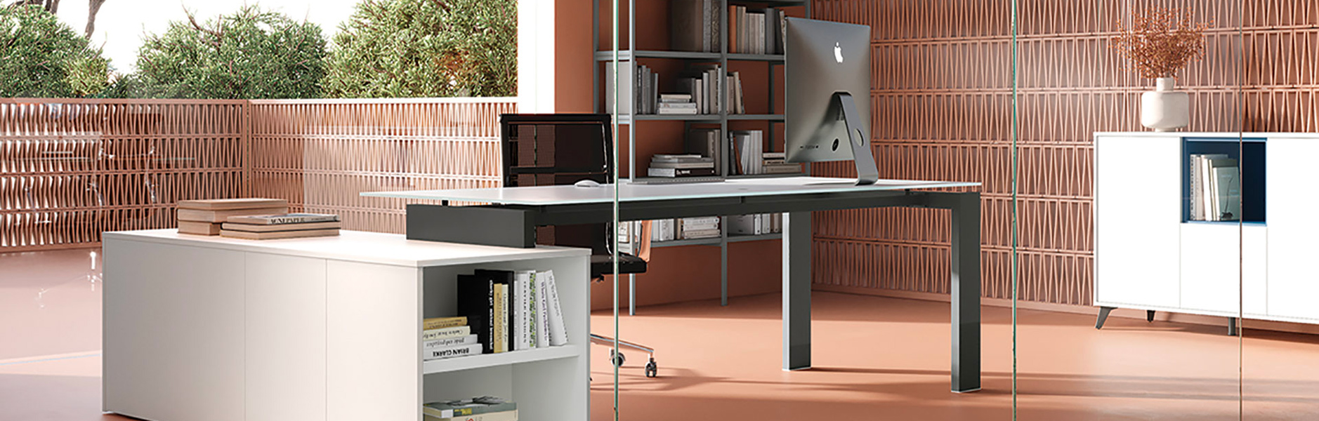 Scrivanie e tavoli da lavoro: il cuore operativo di ogni ufficio. Possono essere singoli, condivisi o regolabili in altezza.